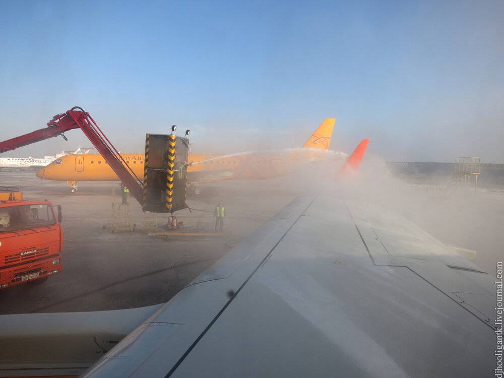 Это самолёт обрабатывают противообледенительной жидкостью.