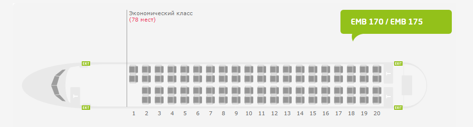 Современный самолет Эмбраер 190: схема салона и лучшие места