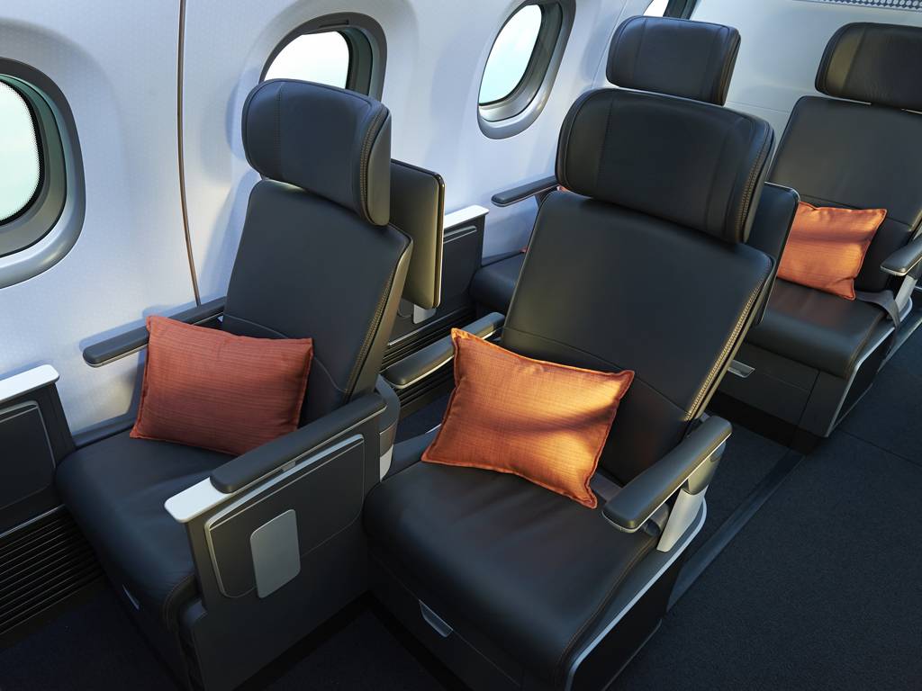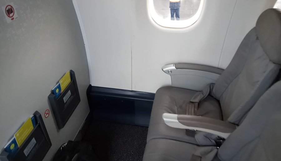 Основными преимуществами будут: увеличенное пространство для ног, отсутствие впередистоящего кресла, твердая перегородка с кармашками для прессы и safety card.
