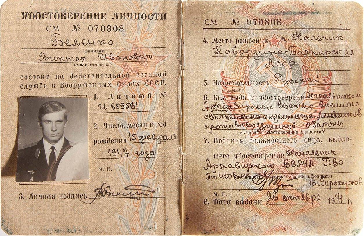 Военный билет старшего лейтенанта Виктора Беленко, который сейчас хранится в музее ЦРУ.