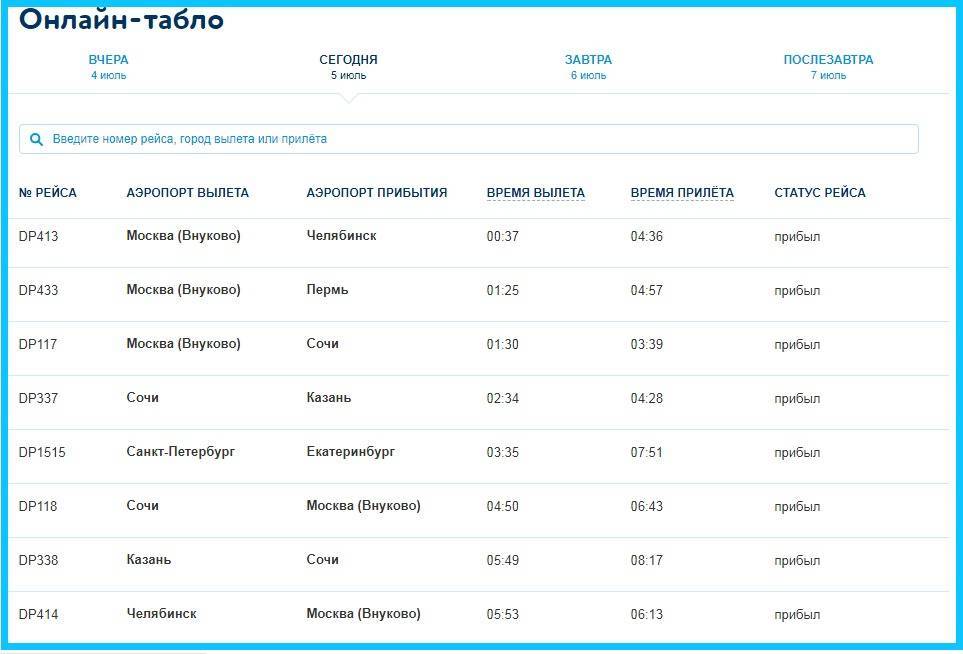 При необходимости можно изучить онлайн-табло, где представлены все ближайшие рейсы, время, а также аэропорт вылета. Выбор осуществляется в привязке к дате.