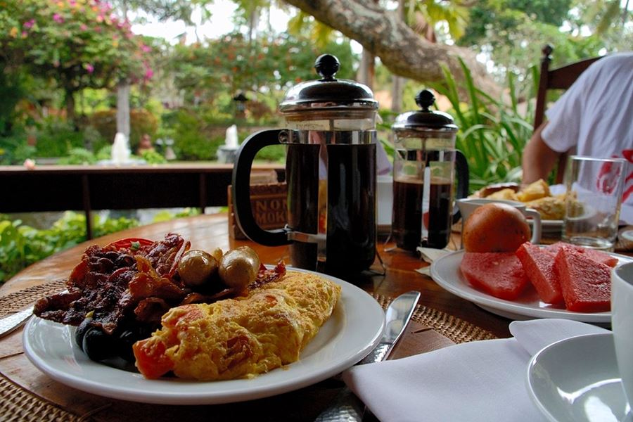 Индонезийская кухня достаточно простая, большая часть блюд содержит рис/лапшу, овощи и что-то мясное. На Бали очень вкусный кофе.