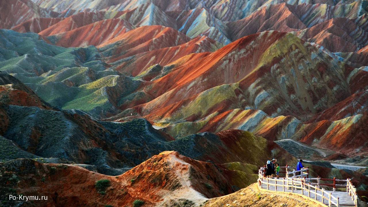 Природа не скупится на удивительные решения и одно из них — разноцветные скалы. Ими могут похвастаться различные горные массивы в разных уголках мира. Вот горы Дэнксия (провинция Ганьсу, Китай):