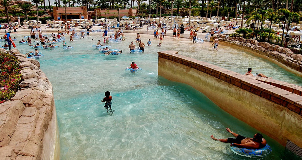 Большой популярностью в аквапарке «Aquaventure» Water Park пользуется «Атака акул»: прогулка на одиночном или спаренном надувном «пончике» через кишащую морскими хищниками лагуну.