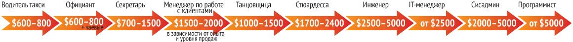 - менеджер по работе с клиентами – $1500-2000 (в зависимости от опыта и уровня продаж);