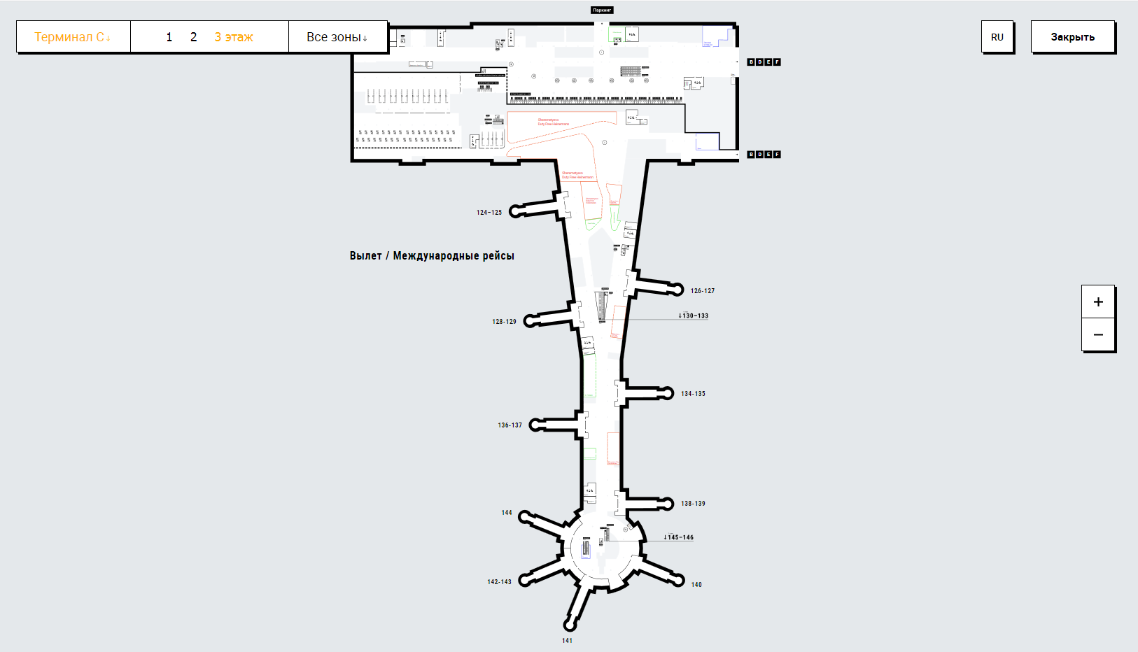 Схема терминала С Международного аэропорта Шереметьево: