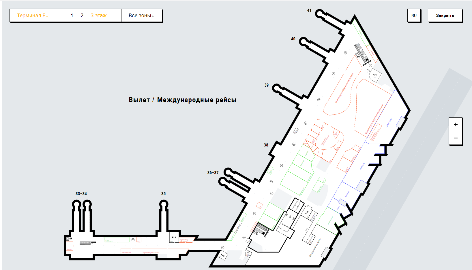 Схема терминала Е Международного аэропорта Шереметьево: