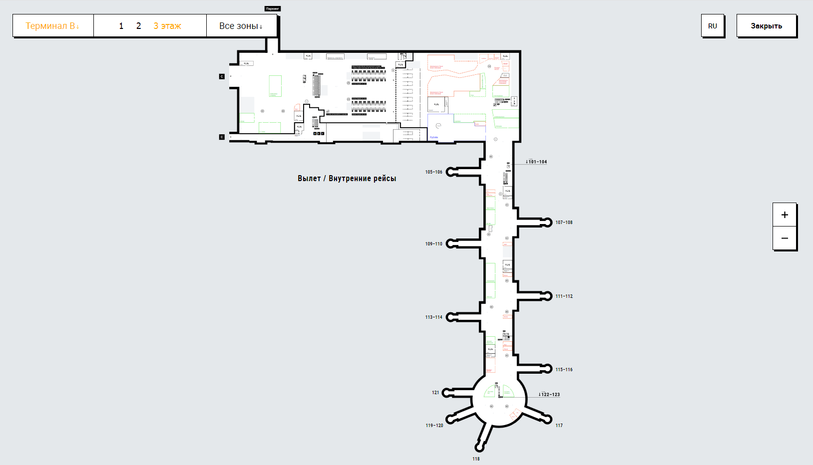 Схема терминала В Международного аэропорта Шереметьево: