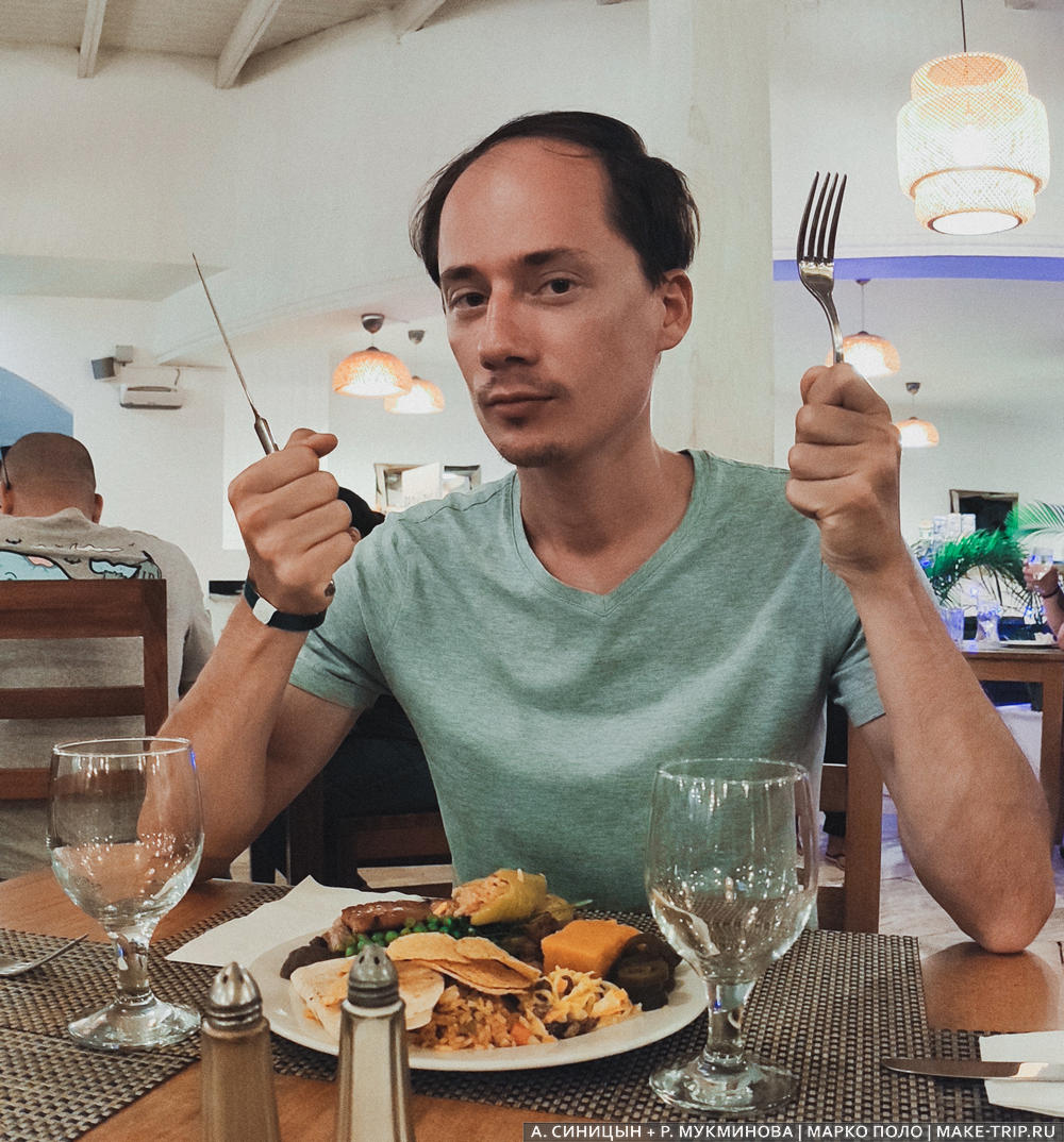 Ужин в отеле 4* в Доминикане. Еда в ресторанах дорогая, выбор в магазине скудный, поэтому не искушайте судьбу и берите “всё включено”.