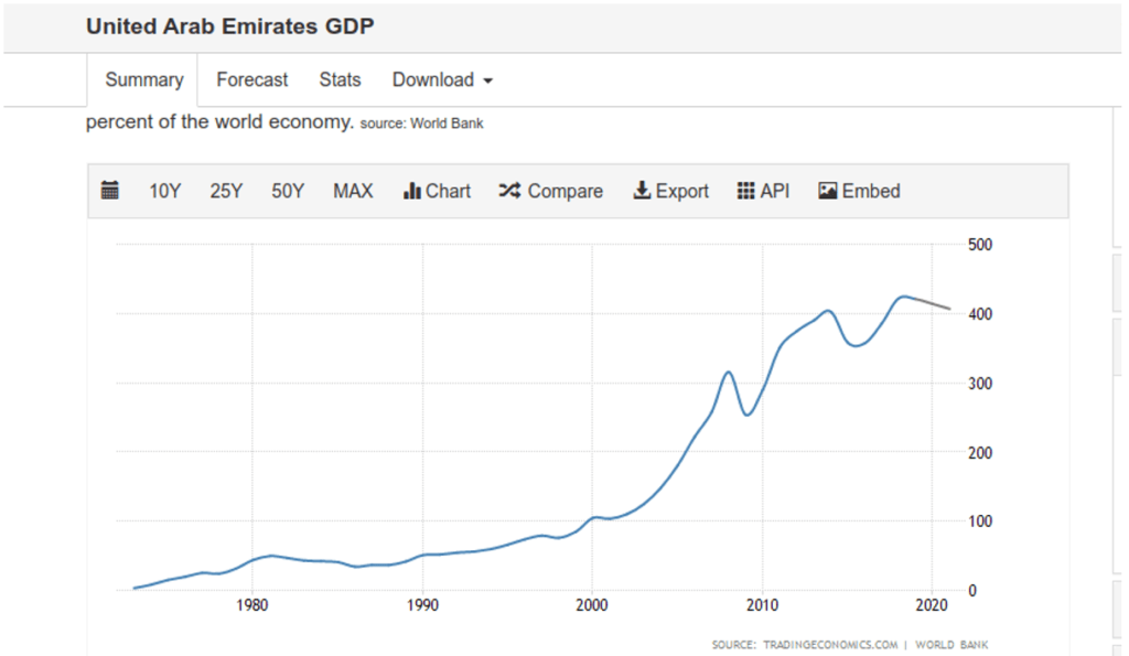 Благодаря режиму наибольшего благоприятствования торговле эмират Дубай сделался центром торговли не только ОАЭ, но и всего Среднего Востока.