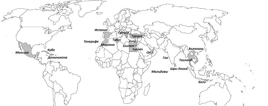 Просто кликните по карте, чтоб узнать продолжительность полета до заинтересовавшего вас курорта