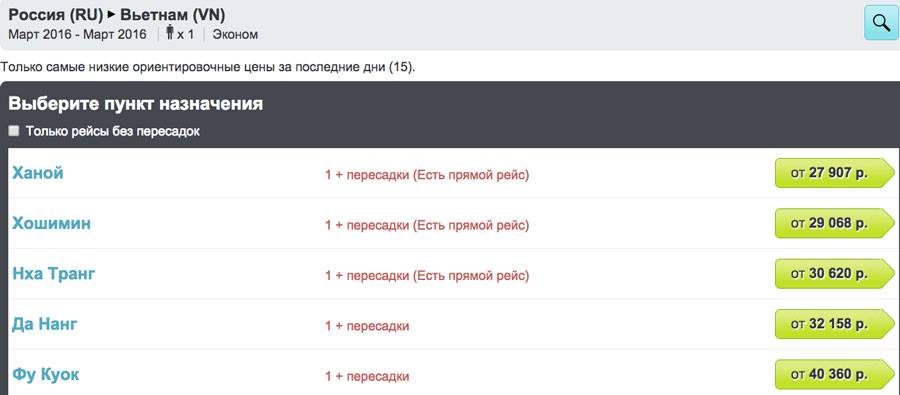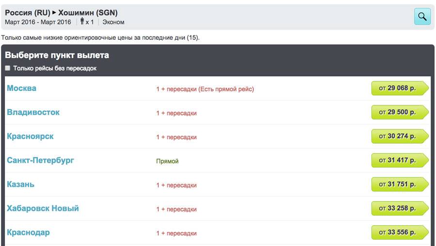 5. Самые дешевые билеты во Вьетнам обычно продаются из Владивостока и Хабаровска. Вы смотрите цену из своего города. Если она всего на 50-100$