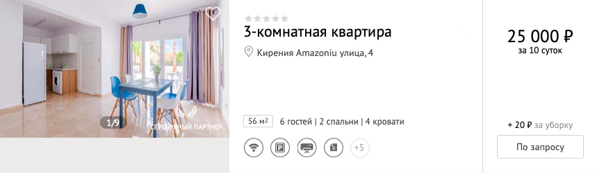 На Букинге можно забронировать апартаменты с отличными отзывами в сезон на 10 дней от 35.000 руб. за весь срок. На Суточно можно найти отличные варианты апартаментов на семью (3 и более человек) в сезон от 20.000-25.000 руб. Бронировать нужно заранее.Пример бронирования апартаментов на 10 суток в летний сезон: