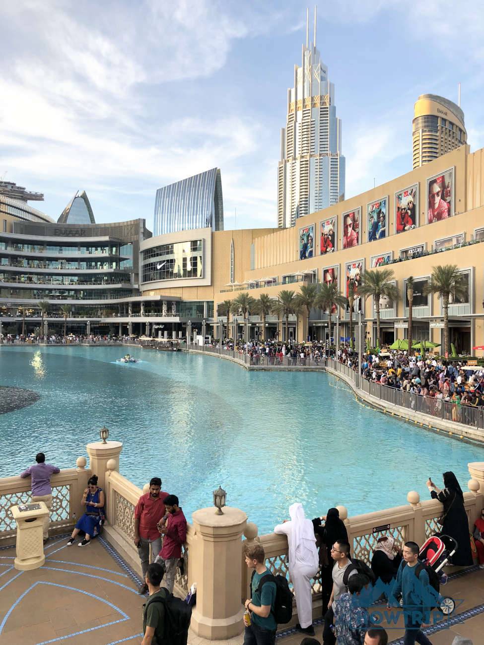 Ну и как же без торгового центра Dubai Mall (вид внутри и на искусственный залив с известными поющими фонтанами)