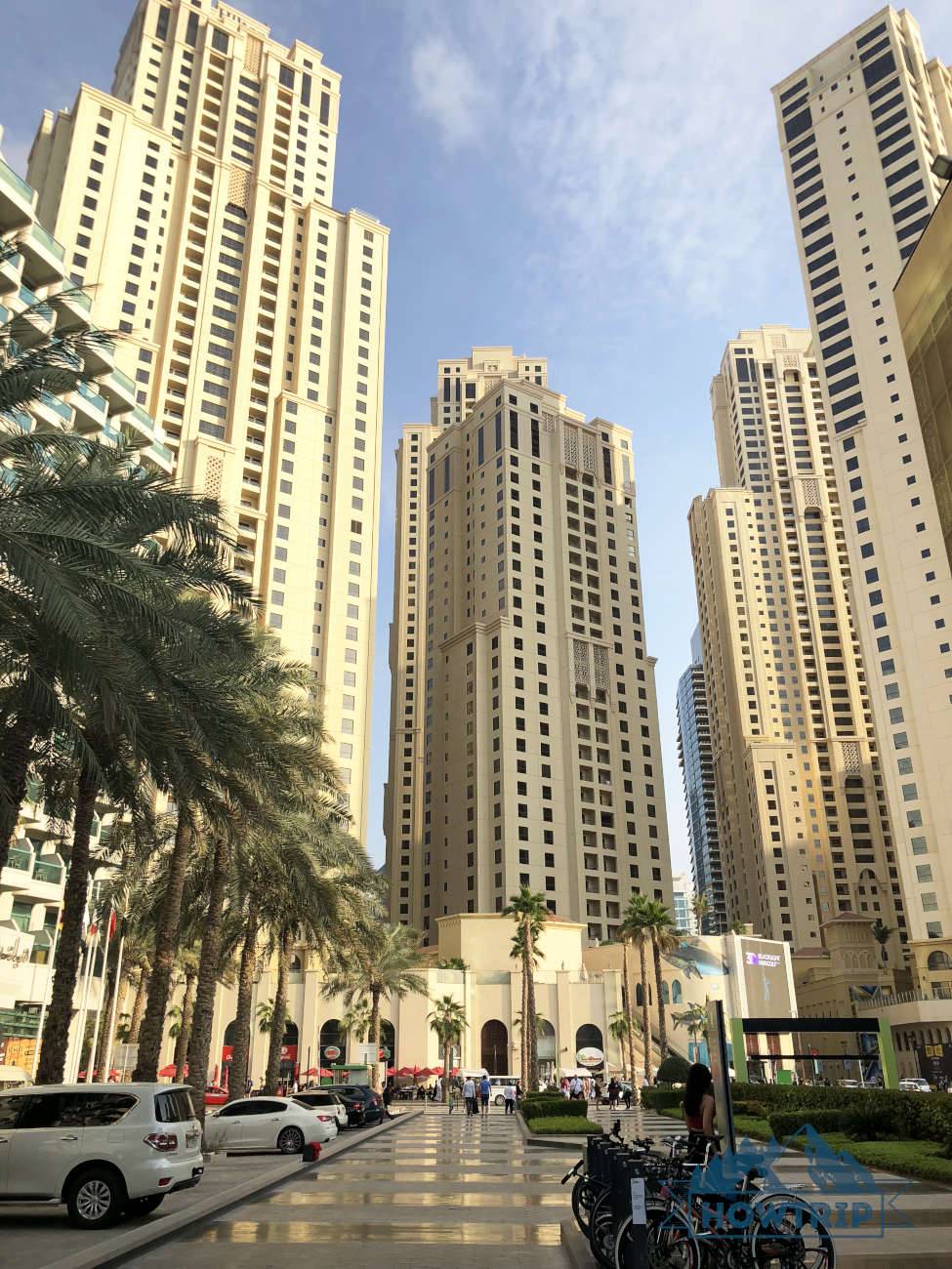 Идем от метро к торговому центру Souk Madinat Jumeirah (рядом с ним можно сделать хорошие фото с отелем Бурдж Аль Араб) — Набережная Dubai Marina