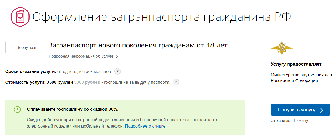Стоимость оформления загранпаспорта через Госуслуги со скидкой: