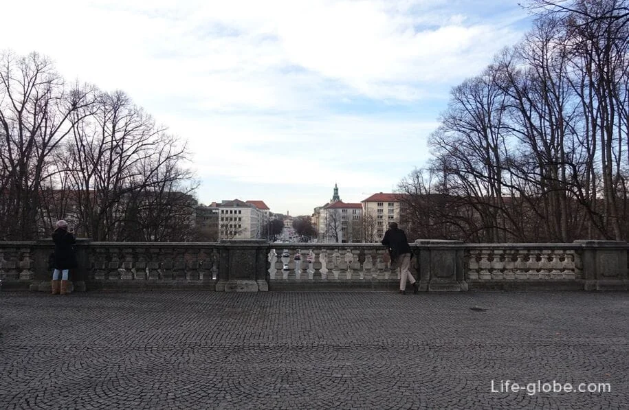 Возле колонны находится открытая площадка – терраса Принцрегент-Луитпольд (Prinzregent-Luitpold-Terrasse), с которой открывается панорамный вид на улицу Принцрегентенштрассе и часть исторического центра Мюнхена.