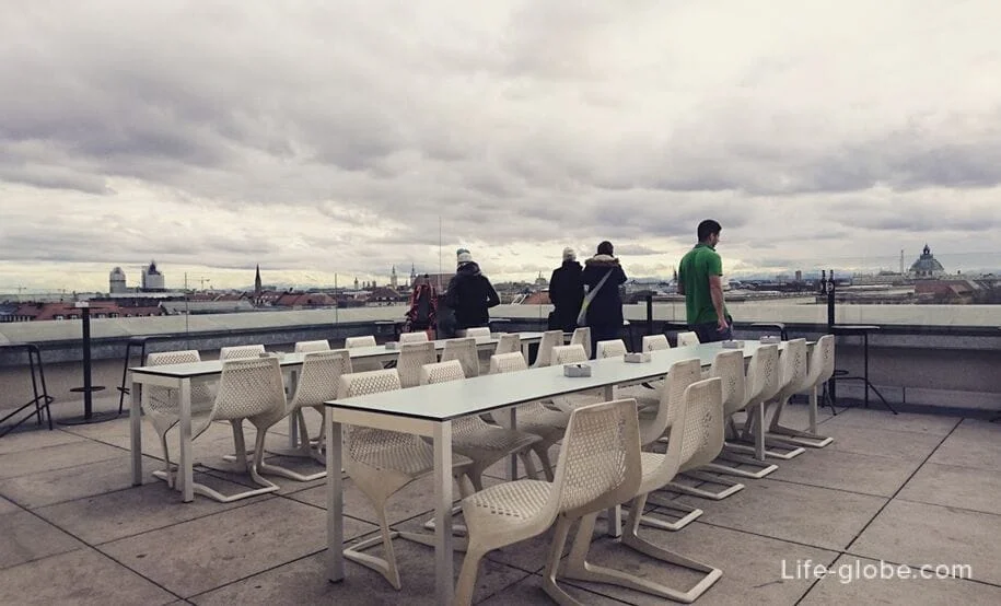 – кафе «Cafe im Vorhoelzer Forum» с террасой со столиками на крыше, откуда открывается отличный вид на центр Мюнхена. Кафе расположено в здании кафедры технического университета, по адресу: Арцисштрассе, 21 (Arcisstraße);