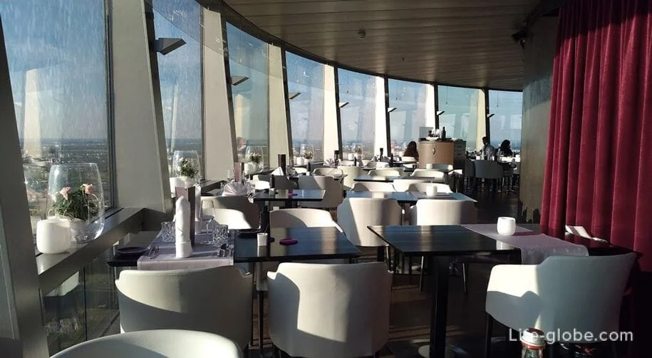 – ресторан «DIE KÜCHE IM KRAFTWERK» с балконом-террасой. Ресторан находится у южной окраины Мюнхена, по адресу: Дригальски-Аллее, 25 (Drygalski-Allee).