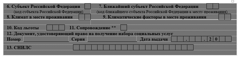 Пункты с 6 по 13 заполняются только для тех граждан, которые имеют право на получение социальных услуг.