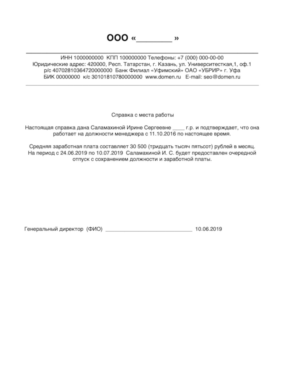 Обратите внимание, этот пункт часто игнорируют, в то время как он является очень важным. Некоторые консульства (к примеру, ФРГ) могут требовать и дополнительных указаний, что работник в данное время находится в отпуске, а не сбежал с работы и может быть уволен.
