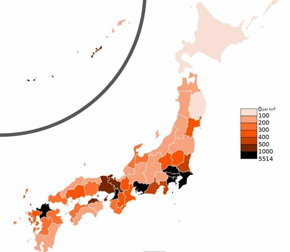 - Хонсю. Население — 103 млн человек. Плотность — 447 человек на квадратный километр.