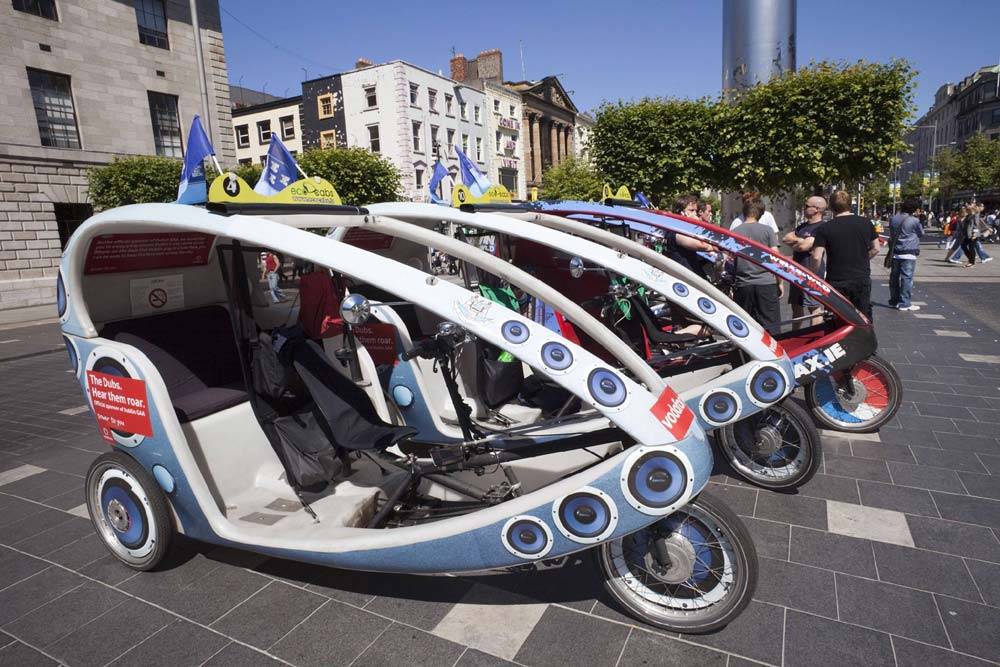 В Дублине с недавних пор появились трехколесные велотакси, которыми можно воспользоваться совершенно бесплатно. Правда, без денег можно преодолеть лишь небольшое расстояние, в пределах полутора километров, но туристам это развлечение очень нравится. Такие такси называют «экокэб». Они не очень быстрые, зато пробки им нипочем, а ярко-зеленая крыша защищает пассажиров от непогоды. Существует такое такси за счет рекламы и государственных дотаций. В помощь велорикшам — электротяга, которая помогает преодолевать подъемы, но чаще на них подрабатывают профессиональные велосипедисты, привыкшие к подобным нагрузкам.