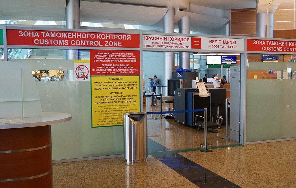 На международных рейсах, перед регистрацией все пассажиры должны пройти таможенный контроль. Во время его прохождения вы увидите два коридора: «красный» и «зеленый». Они обозначаются надписями на русском и английском языках: «Товаров, подлежащих обязательному письменному декларированию, нет» (Nothing to declare) для зеленого коридора и «Товары, подлежащие обязательному письменному декларированию» (Goods to declare) для красного коридора.