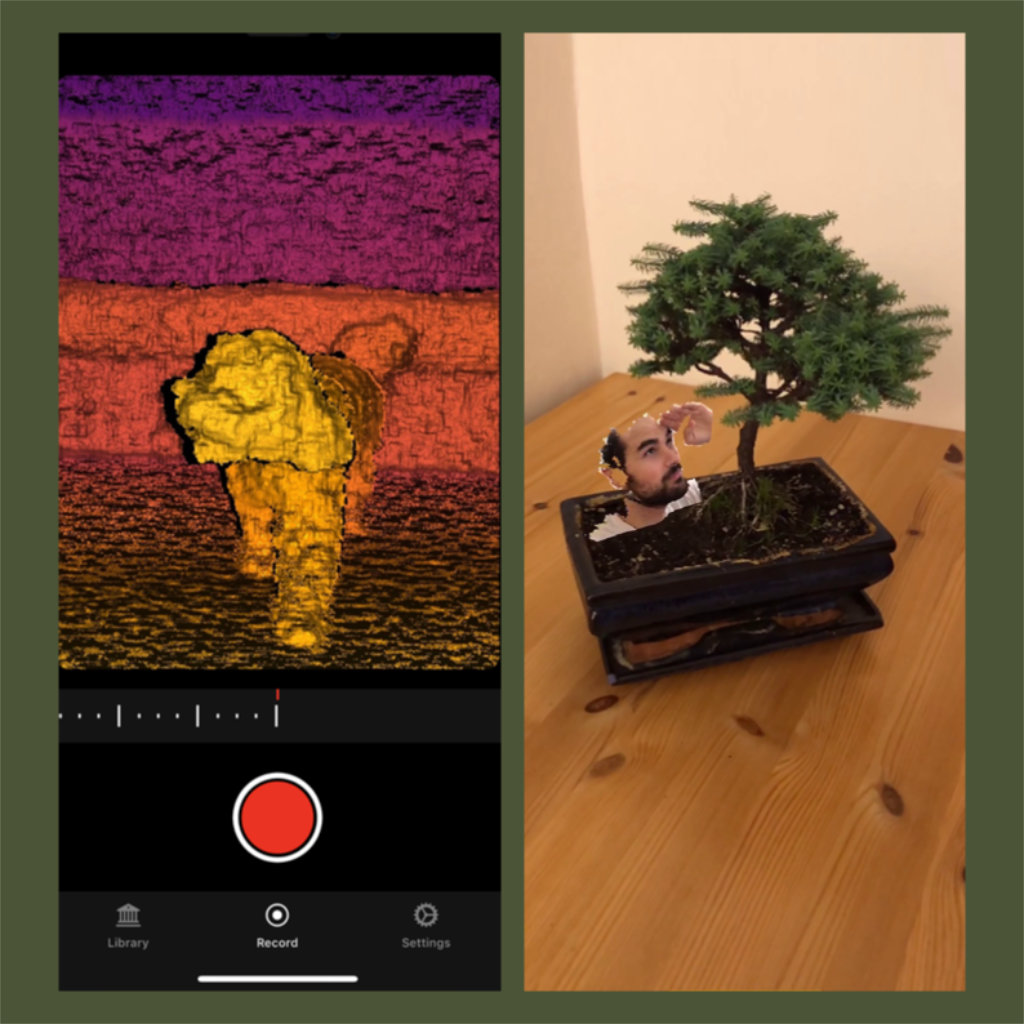 Еще одно любопытное приложение для создания роликов с использованием дополненной реальности. Оно сканирует объект с помощью Face ID или LiDAR и дает возможность использовать его в видеозаписях. Результат получается сюрреалистическим, но вполне интересным.