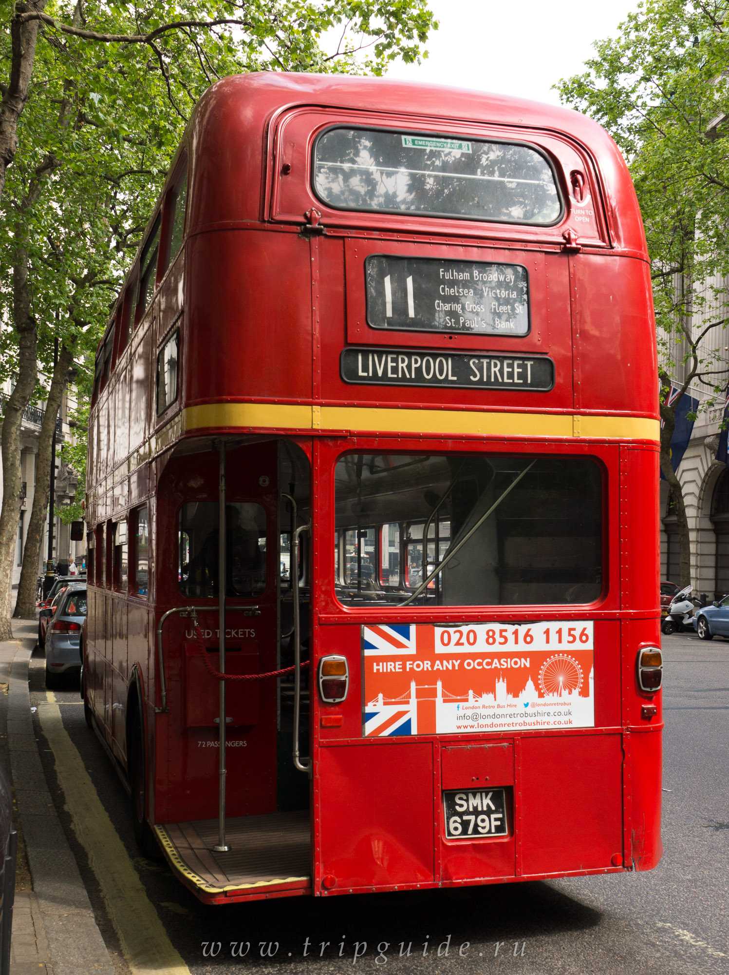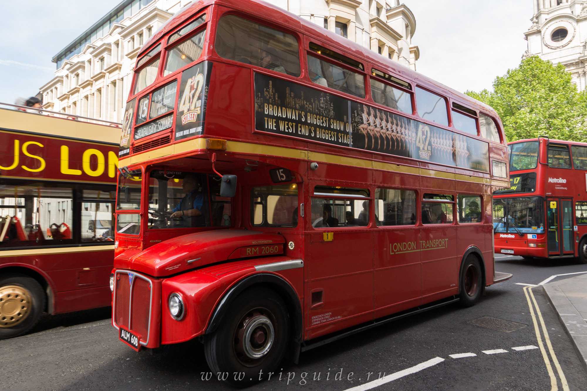 Автобус модели «Рутмастер»англ. Routemaster – хозяин маршрута обслуживал городские линии с 1956 по 2005. Вместе с башней Биг-Бен, Тауэрским мостом и кафедральным собором Святого Павла красный двухэтажный автобус навсегда стал символом столицы Соединенного Королевства.