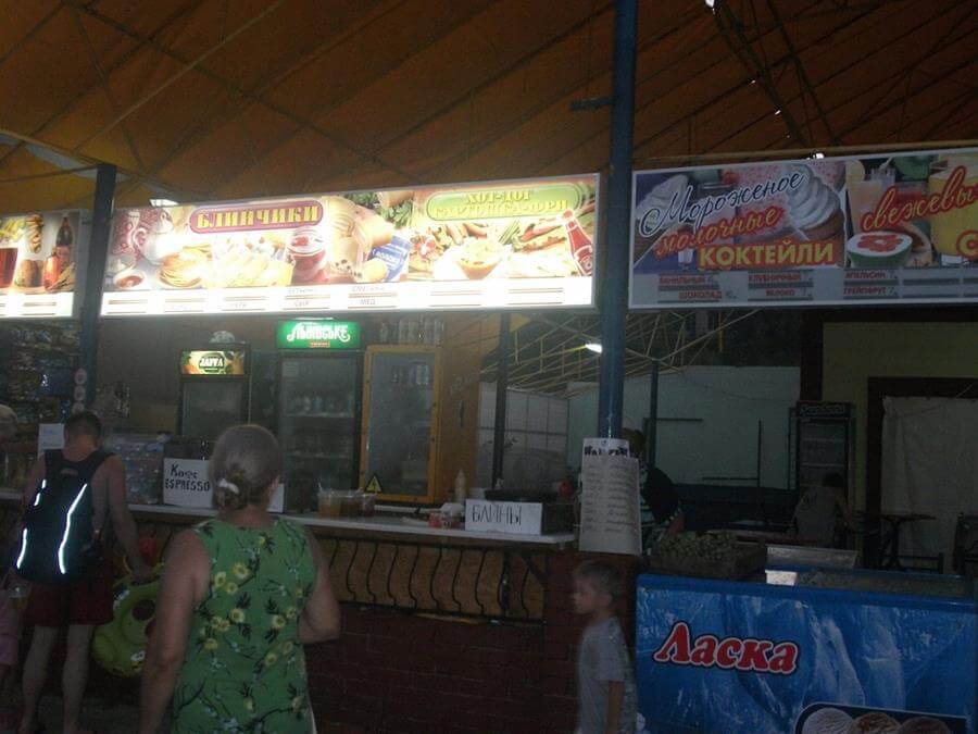 В курортном посёлке Приморский есть множество пунктов общественного питания и особенно это касается набережной.