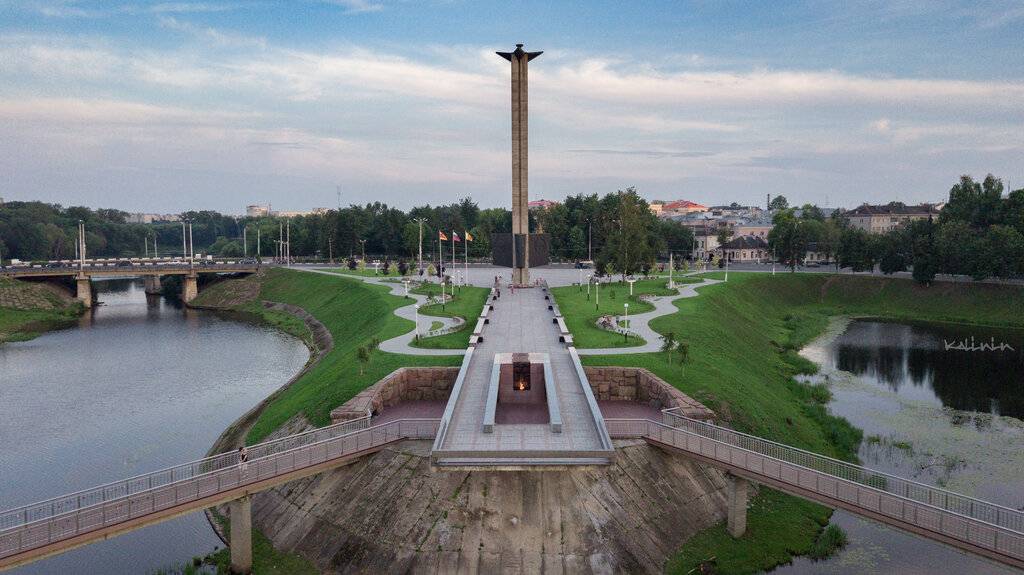 Далее передвигайтесь по Советской улице к площади Пушкина, на которой находится стела «Город воинской славы». Памятник спланирован в виде массивной гранитной колонны, высота которой достигает одиннадцать метров.