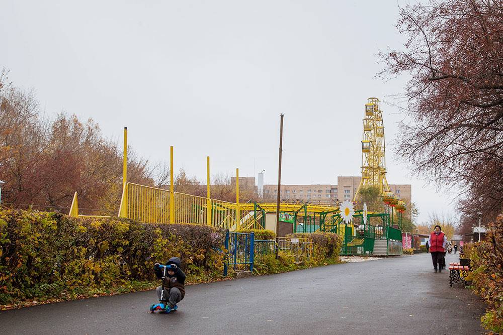 Через дорогу от детского парка находится парк Победы. Вечный огонь, пара танков и пушка — вот и все экспонаты. Единственное время, когда здесь что-то происходит, — День Победы.