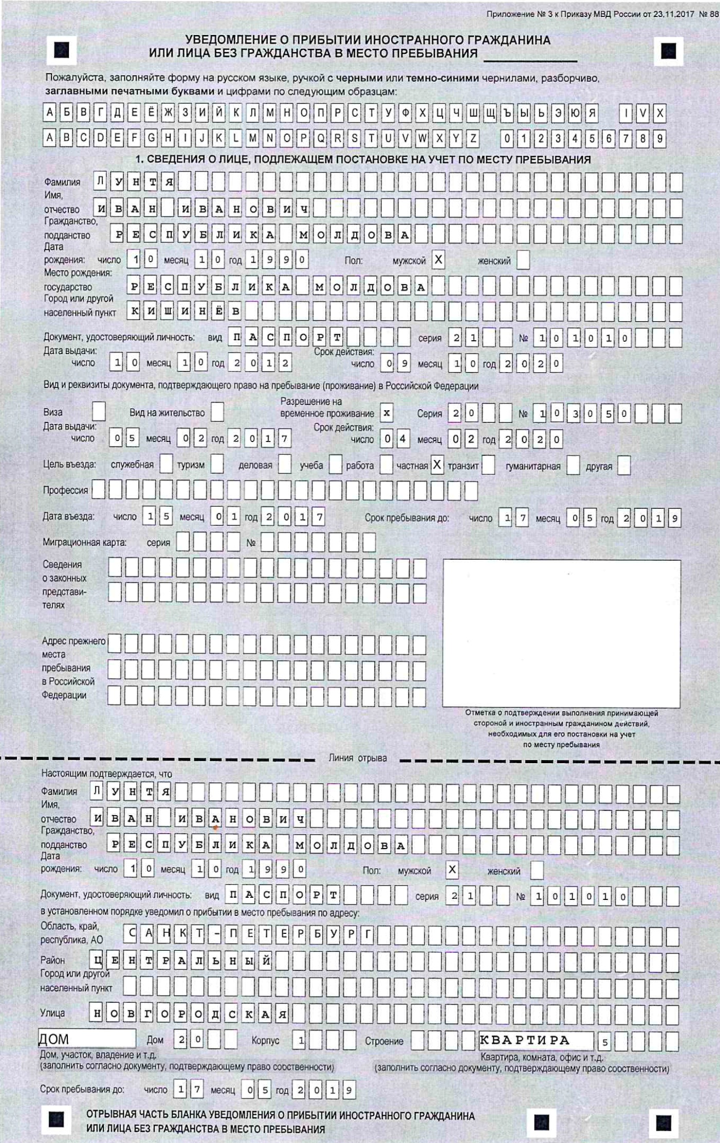 Как заполнить уведомление о прибытии иностранного гражданина в место пребывания