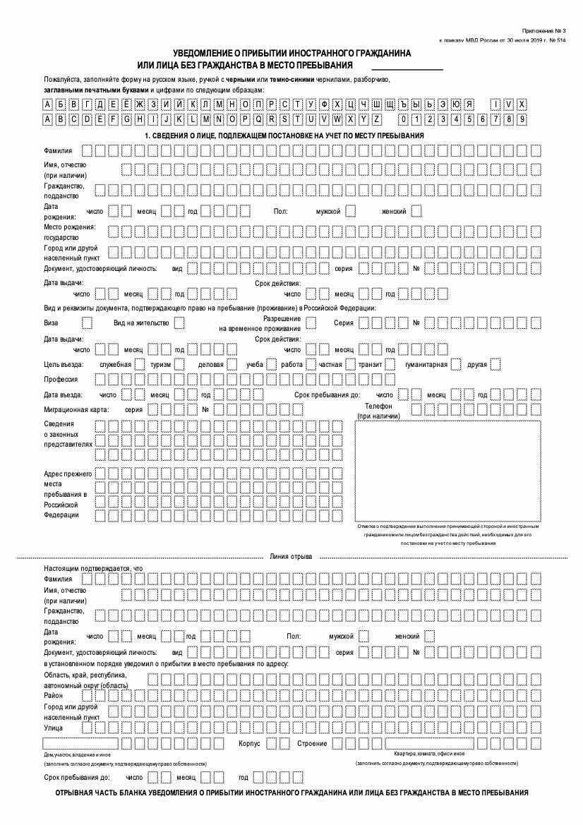 Как заполнить уведомление о прибытии иностранного гражданина в место пребывания