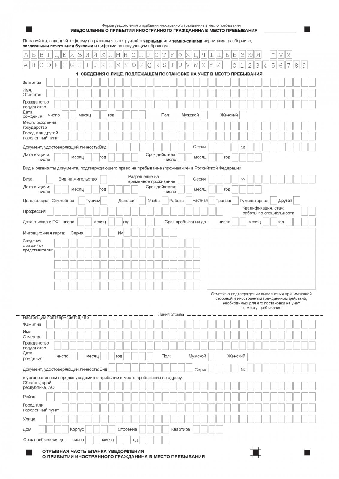 Как заполнить уведомление о прибытии иностранного гражданина в место пребывания