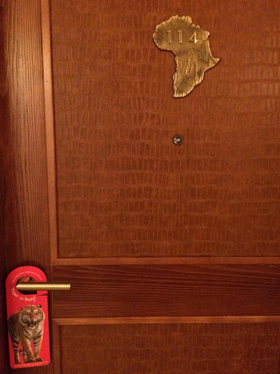 Отель — тематическо-экзотический, близость зоопарка обязывает. Один этаж оформлен в африканском стиле и даже табличка Do not disturb, которую надо вешать на дверь, гласит «Тигр занят» (если вы в номере) или «Тигр на прогулке» (если вы ушли).