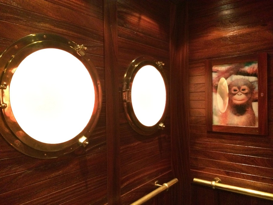 Другие этажи сделаны в азиатском стиле, а сауна и фитнес — в арктическом. Лифт — подводная лодка с иллюминаторами, которая перемещает вас между отельными «континентами».