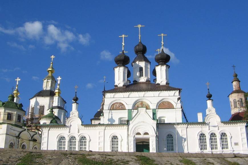 Превосходный белокаменный храм с подчерненными куполами, освященный в 1668 г., возведен на месте упокоения Прокопия Праведного, жившего в Великом Устюге и канонизированного православной церковью в середине XVI в. Святому, саркофаг с мощами которого хранится в храме, приписывается несколько чудес. Сегодня собор является одновременно музеем и действующей церковью. Обязательно побывайте здесь и осмотрите восхитительный резной иконостас, вновь заблиставший позолотой после реставрации, проведенной в последнее десятилетие прошлого века.