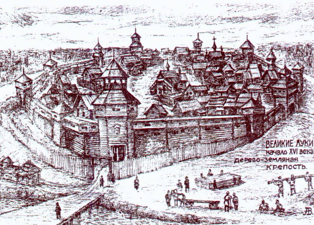 Известно, что уже в 1198 году в Луках стоял деревянный кремль, который постоянно обновлялся и поддерживался в боевом состоянии. К XVI веку оборонительные укрепления города (к тому времени Луки уже обрели приставку «Великие») четко делились на крепость и кремль. К 1635 году общая протяженность Великолукский крепостных стен составляла 1100 метров, куда входило 12 боевых башен. Конечно, стоит понимать, что к тому времени деревянная крепость была изрядно потрепана регулярными сражениями, набегами и погромами. Крепость была окружена земляным валом и рвом.