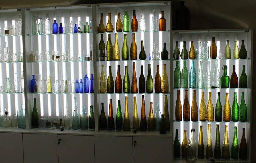 Здесь находятся бутылки, в которые наливали алкогольные напитки, а также посуда, применявшаяся в парфюмерном производстве и фармацевтике. Есть также емкости из-под молока и лимонада.