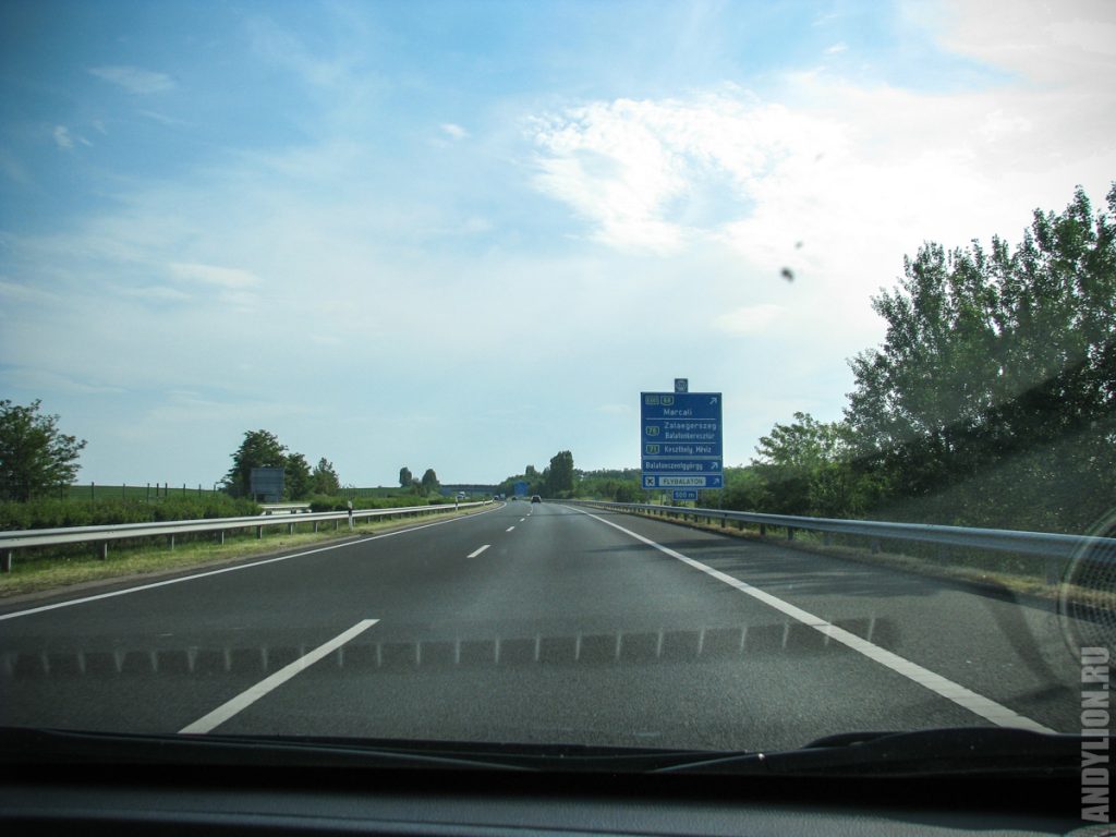 Часть пути по Венгрии ничего особенного собой не представляла. Хороший автобан с разрешенной скоростью 130км/ч, но с абсолютно неинтересными пейзажами по сторонам.