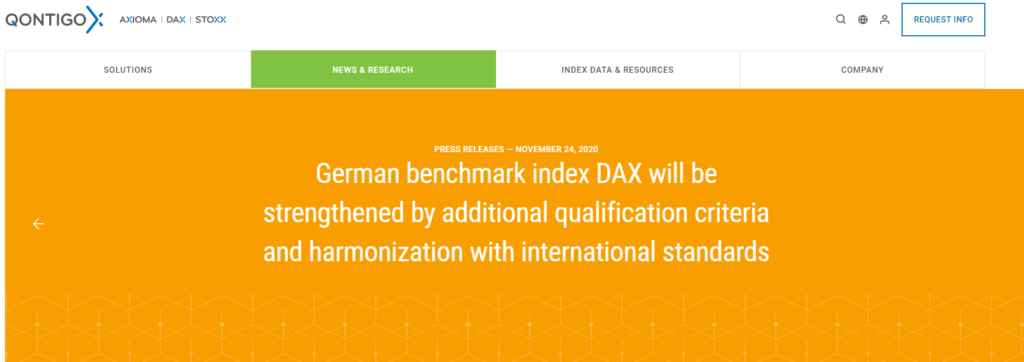 В конце ноября 2020 г. на сайте qontigo.com появилось сообщение, в котором анонсировались существенные изменения индекса Дакс. Усовершенствования касаются и формирования рейтинга акций, из которых потом отбираются новые компоненты корзины, и количества акций, входящих в состав Дакс.