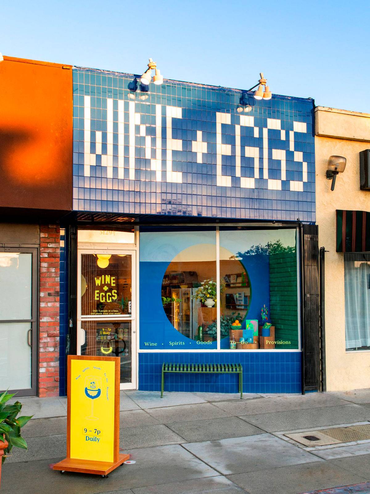 Удачным примером такого сочетания является яркая и ироничная винотека Wine&Eggs («Вино и яйца») в Лос Анджелесе, объединяющая в себе винный магазин и продуктовую лавку