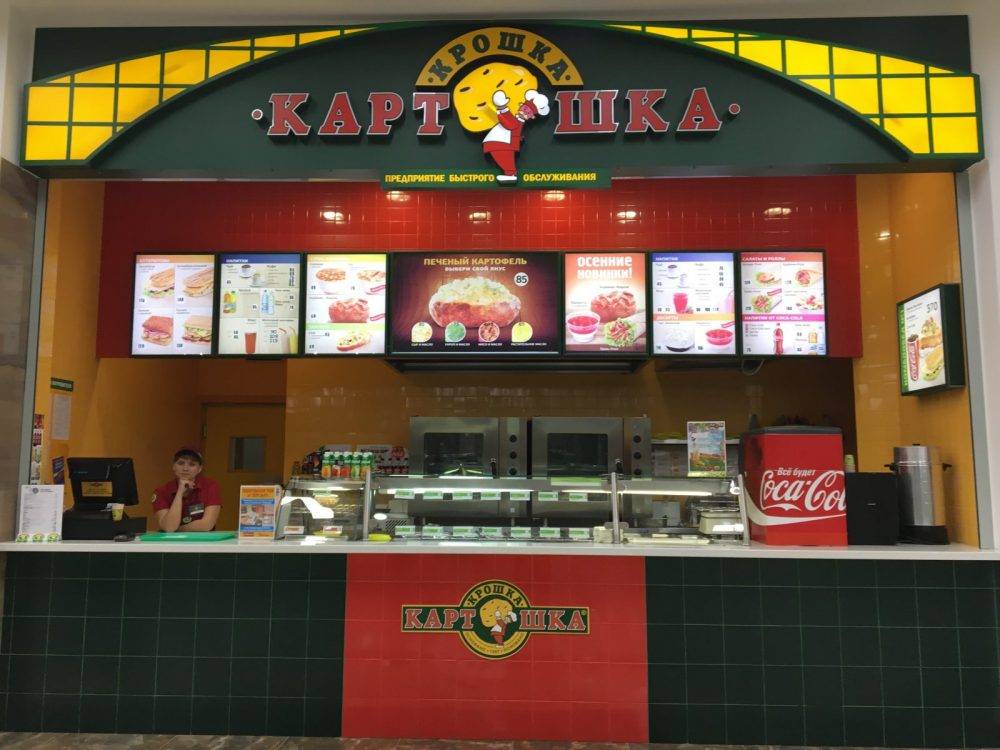 - Еще одно кафе на первом этаже — это Крошка картошка, где фастфуд в виде жареной картошки дополняется продуктами полезного питания, например, свежими салатами и мясом.