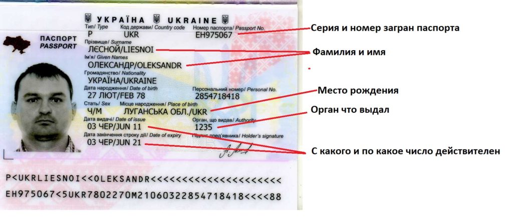 - Ксерокопия главной страницы заграничного паспорта (страничка с фотографией и подписью);