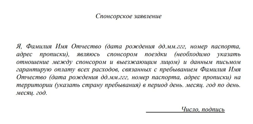 - подтверждение о полном покрытии суммы, нужной для поездки по путевке.