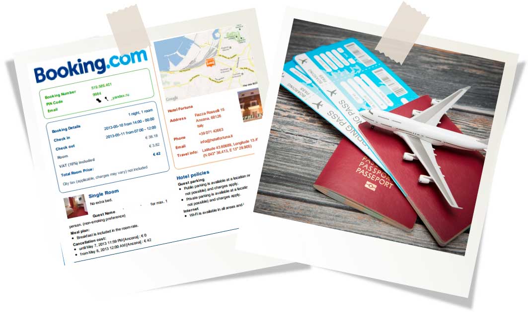 - Оплаченные билеты в оба конца.