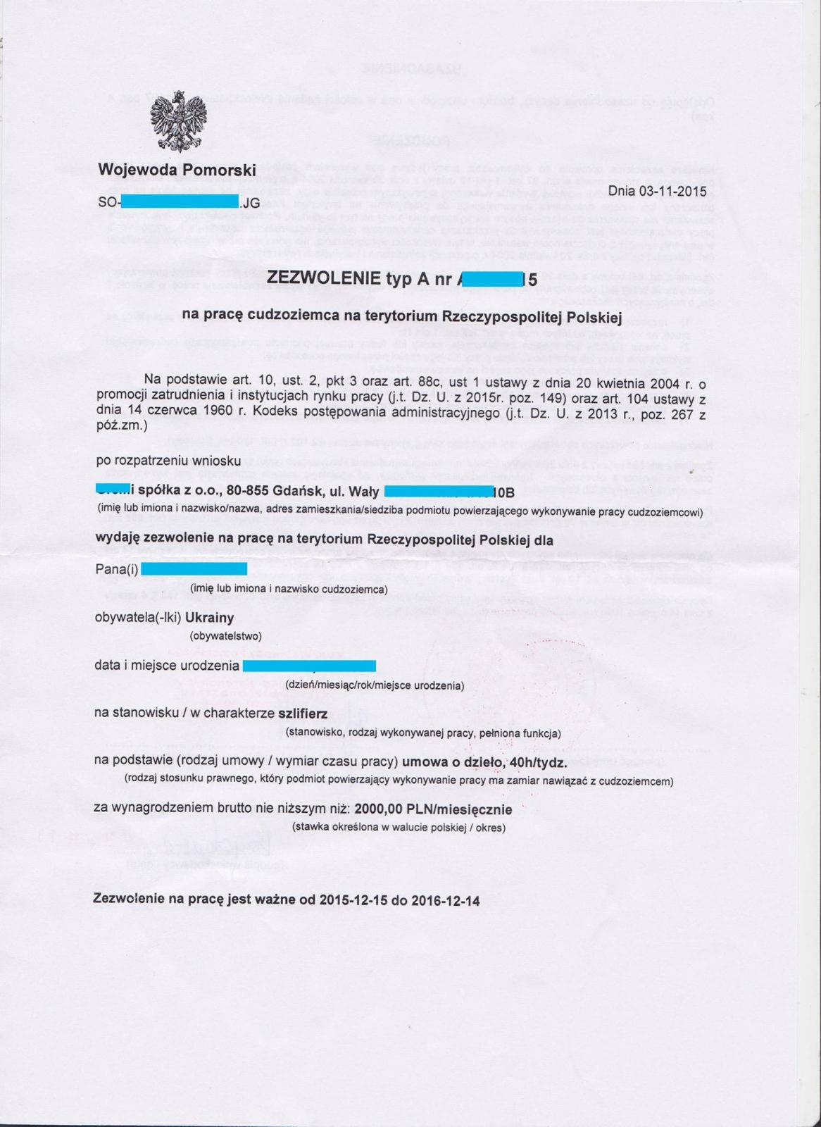 При необходимости нанять иностранца на более длительный срок, без образования у последнего «полугодового коридора», в течение которого он не имеет права работать, польскому работодателю следует получить разрешение на работу (Zezwolenia na pracę). Согласно §2 Постановления Минсоцтруда Польши Dz.U.2017.0.2345 от 07.12.2017, существует 6 видов документов, разрешающих трудоустройство, 5 из которых выдаются воеводой по запросу работодателя. Наиболее распространенным является разрешение категории «А», которое в странах СНГ многие называют приглашением от воеводы.