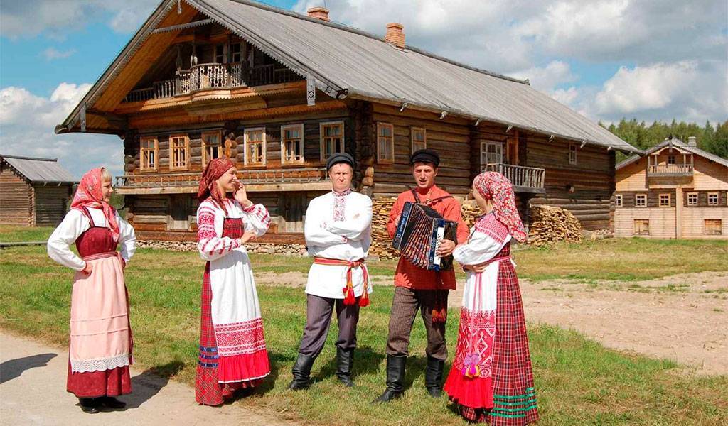 Гости могут гулять по живописной территории, где расположены достопримечательности. Это ветряные мельницы, жилые дома, Георгиевская церковь, часовенка Ильи Пророка, амбары и прочие строения, перевезенные из деревень Вологодчины.
